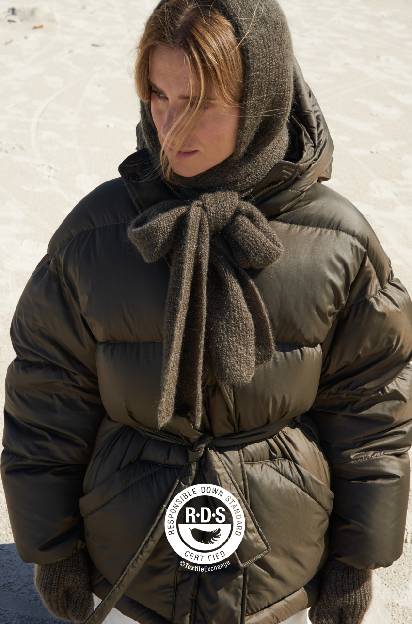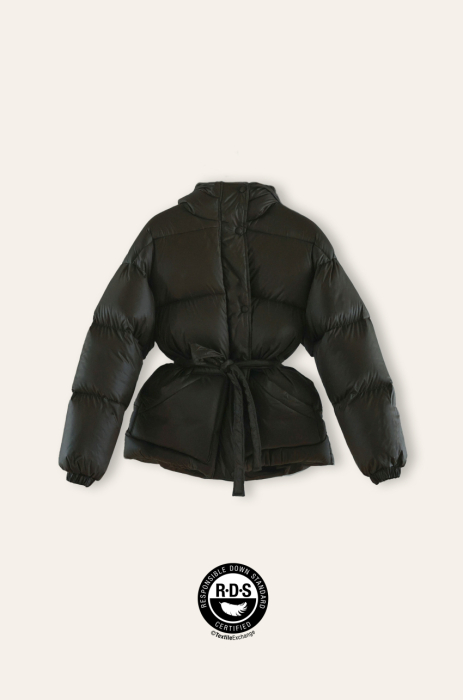 Nasz kultowy model puchowej kurtki powraca w odświeżonej formie. Tym razem narzuciliśmy sobie jeszcze wyższe standardy i uzyskaliśmy certyfikat RDS. Zapewnia on, że puch i pierze pochodzą od kaczek i gęsi, którym zapewniono odpowiednie warunki przez cały okres hodowli. Certyfikat ten zyskał uznanie niezależnych organizacji prozwierzęcych, jednak trudność w jego pozyskaniu (i związane z tym wyższe koszty produkcji) sprawiają, że wciąż bardzo niewiele polskich marek może się nim poszczycić. Marka MLE otrzymała oficjalny numer licencji (CU 1456815). Model został wykonany z tkaniny, która posiada właściwości wodoodporne oraz puchoszczelne, dzięki czemu puch nie wydostaje się na zewnątrz. Kurtka posiada kaptur, stójkę, dwie kieszenie po bokach i wiązanie w pasie. Zapinana jest na suwak i zatrzaski w krytej listwie. Posiada podszewkę.