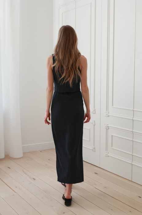 Spódnica maxi z mieszanki lnu o prostym, nowoczesnym kroju. Posiada wysoki stan fason z elastyczną talią. Połącz ją z kamizelką Meda lub noś z ulubionym topem lub koszulą.