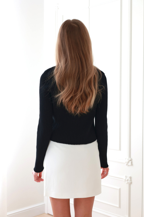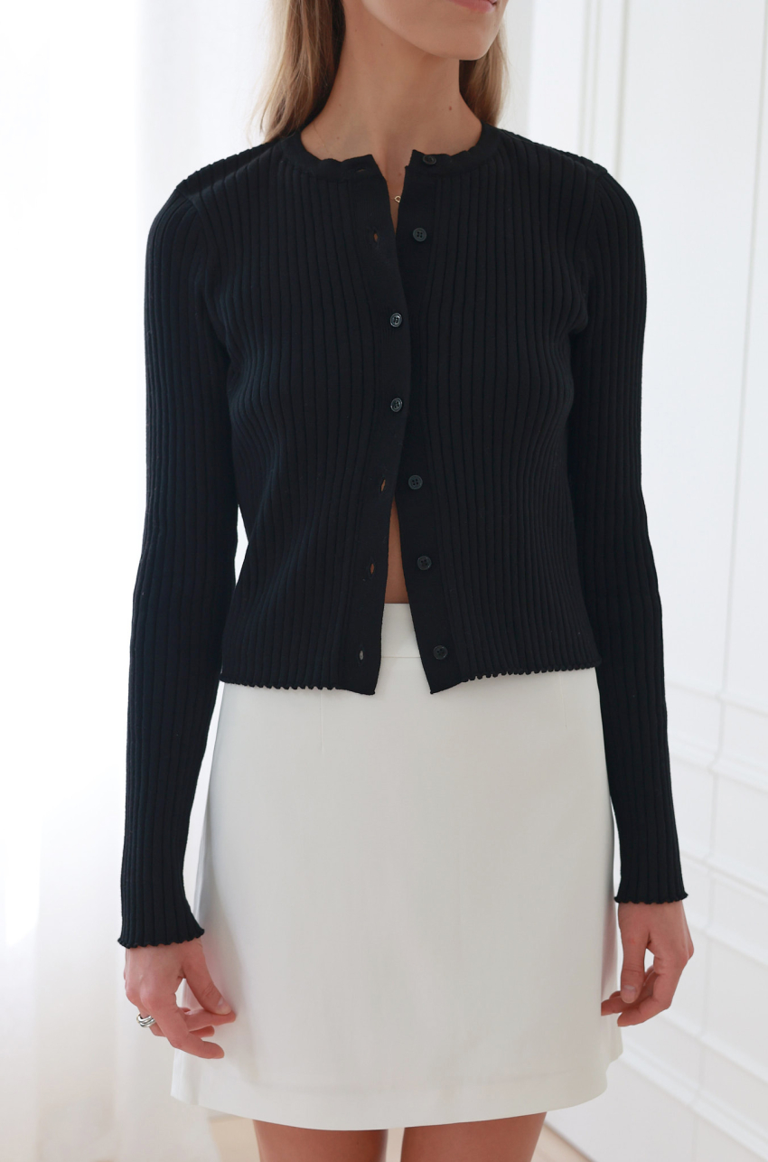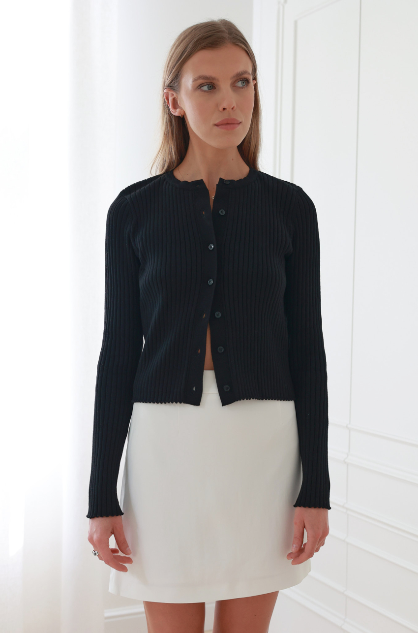 Klasyczny sweter o dopasowanym kroju, wykonany z wysokiej jakości mieszanki bawełny z certyfikatem Oeko-Tex. Model o prążkowanej fakturze, zapinany na rząd perłowych guzików, z subtelnym wykończeniem przy mankietach i dole. Posiada okrągły dekolt i elegancko modeluje sylwetkę dzięki elastycznej strukturze dzianiny. Idealny na weekendowy wyjazd lub wieczorny spacer po mieście.